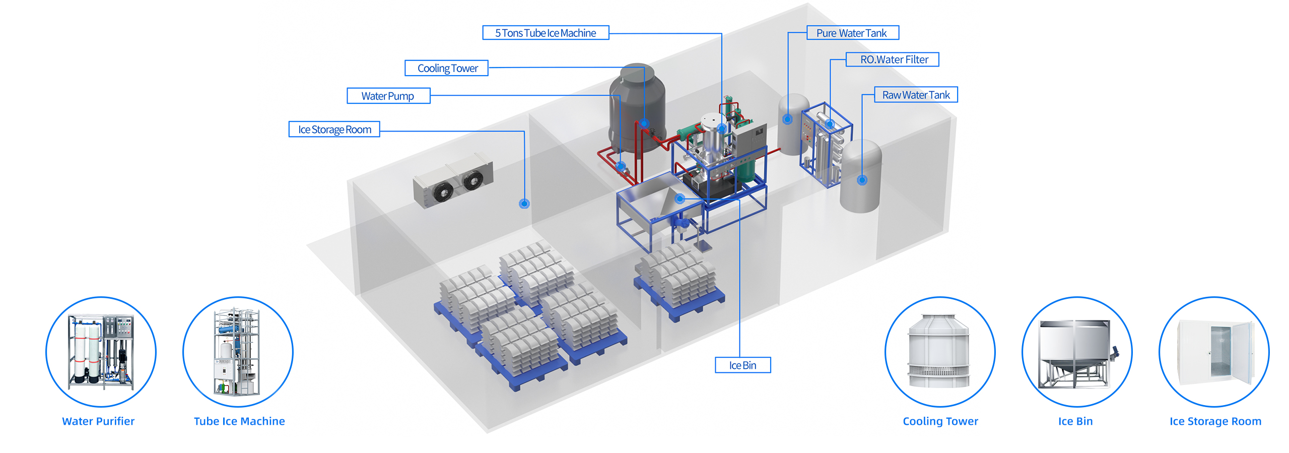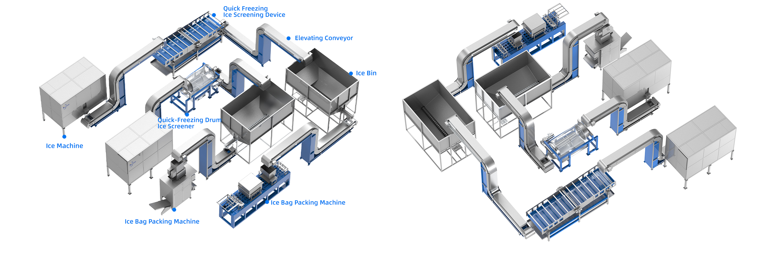 يتم وضع خط الإنتاج بأكمله في تخزين بارد نظيف وصحي ، مما يقلل من فقدان الجليد في العملية بأكملها.